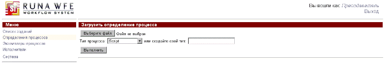 На открывшейся странице (рис 1.38) в качестве типа процесса выберите «Script». Затем нажмите кнопку «Выберите фай»л и в появившемся окне укажите созданный вами архив, после чего нажмите кнопку «Выполнить».