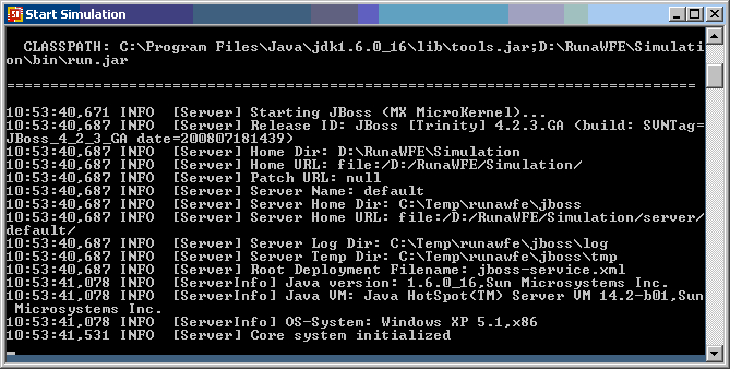 Для начала запустите сервер JBoss, для этого дважды кликните по ярлыку «Start Simulation» на рабочем столе. Запустится сервер JBoss (рис 1.1).