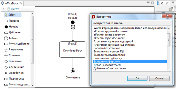 Пример разработки и выполнения процесса officeDocx содержащего обработчик Docx