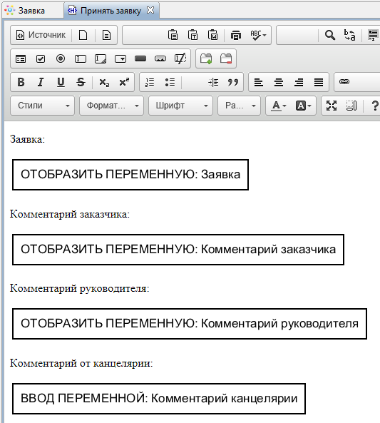 - "Комментарий канцелярии" - переменная формата "Текст".