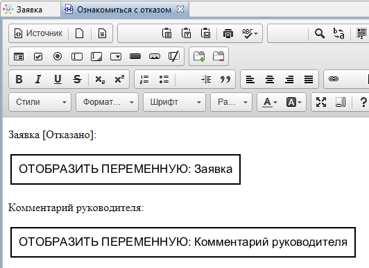 - "Комментарий руководителя" - переменная формата "Текст"