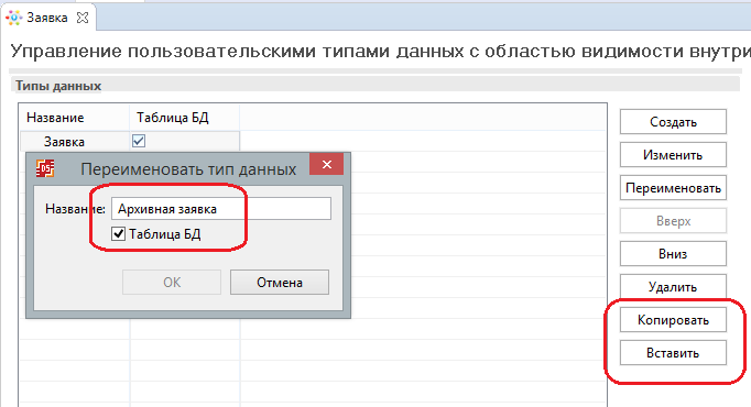 - "Архивная заявка" - переменная пользовательского типа "Заявка"