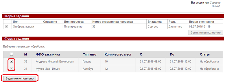 - "Отобранные заявки" - переменная формата "Список(Заявка)", будет содержать отобранные диспетчером заявки