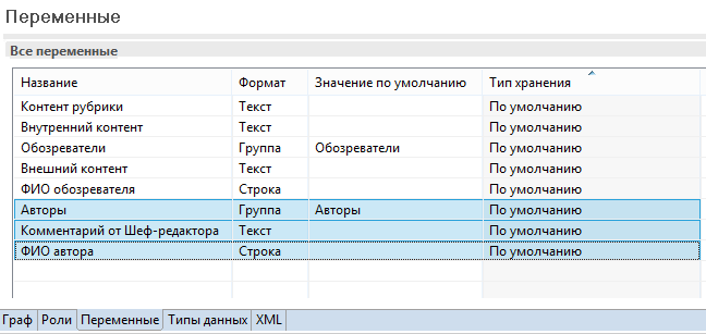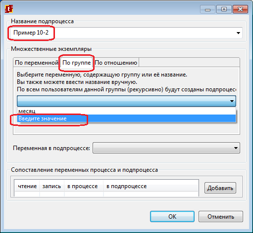 - "отдел кадров", используется в процессе "Пример 8-2", будет инициализирована пользователем, запустившим процесс.