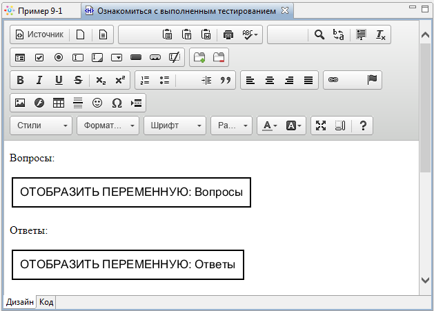 Также добавьте компонент "Отобразить переменную" для переменной "Комментарий от Шеф-редактора" и "Ввод переменной" для переменной "Комментарий редактора" (см. Рис.5.23).