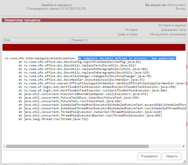 - Войдите в web-интерфейс системы RunaWFE под пользователем "Administrator" (пароль wf).