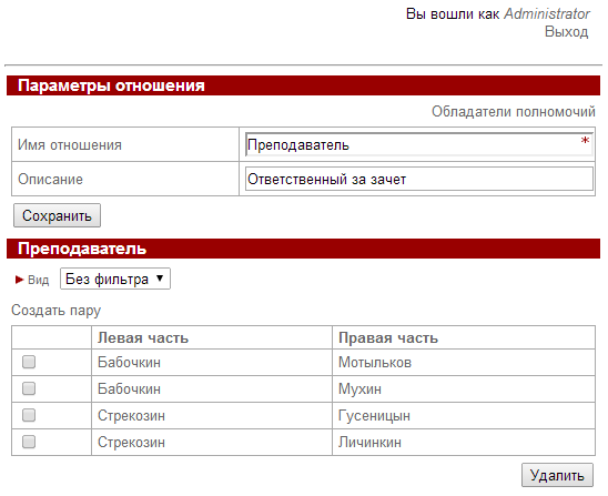 Роль «Студент» должна быть инициализирована стартовым узлом, а роль «Преподаватель» - отношением «Преподаватель», примененным к роли «Студент» (см. предыдущие занятия). Роль "Старший преподаватель" должна быть инициализирована группой "Преподаватели".