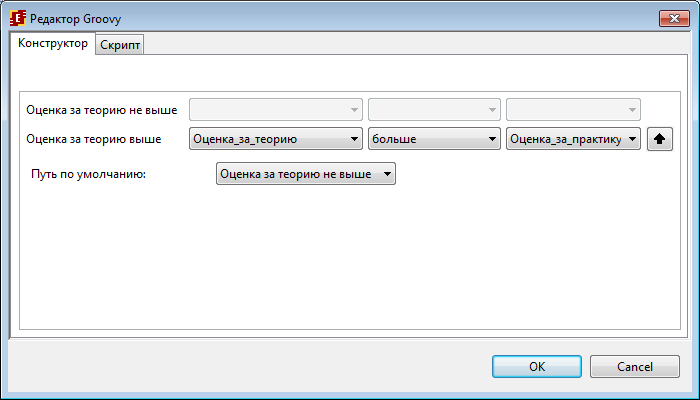 В форме узла-действия "Поставить итоговую оценку за экзамен" должны быть введены значения переменных "Комментарий старшего преподавателя" и "Итоговая оценка". Вывод переменных и ограничения должны быть аналогичны ранее описанным формам.