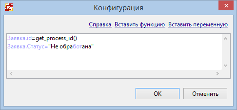 - "название отношения" - может быть задано как с помощью строковой переменной (содержащей название отношения), так и с помощью ввода названия отношения непосредственно в конфигураторе
